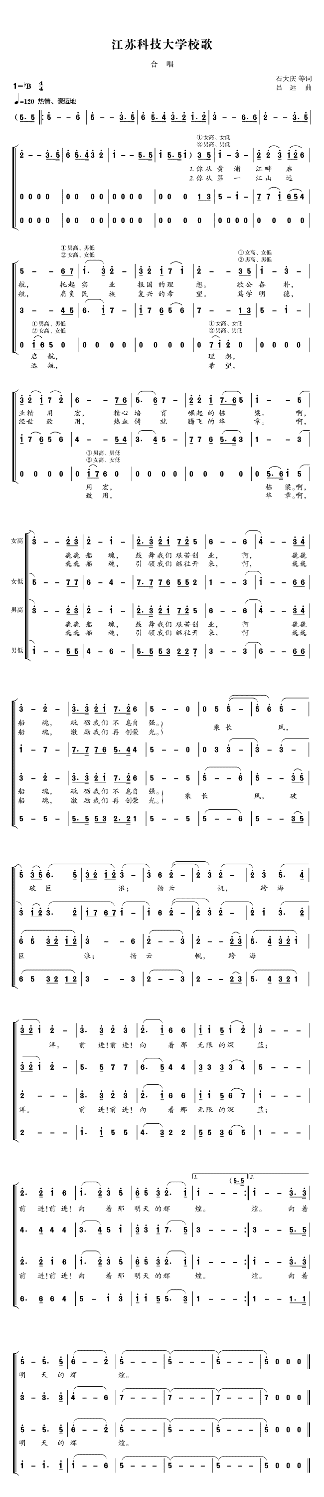 石大庆 等作词 吕远 作曲