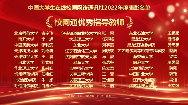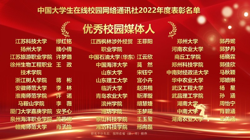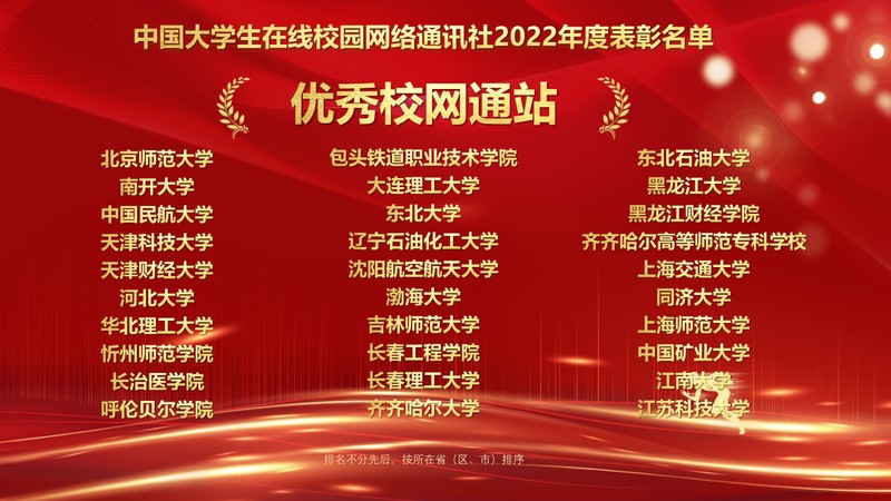 1月10日,教育部中国大学生在线“2022校园号建设暨校网通工作年会”在北京召开,会议对2022年校园网络通讯站及校园行活动进行了表彰,来自全国高校的指导教师和学生代表线上参会。我校党委宣传部融媒体中心校园网络通讯站从全国600余个校园网络通讯站中脱颖而出,荣获“优秀校园网络通讯站”、校园行活动“优秀组织单位”,党委宣传部王文强老师荣获“优秀指导教师”,缪红铭同学荣获“优秀校园媒体人”称号。