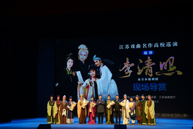 3月6日,由中共江苏省委宣传部和江苏省教育厅联合主办的2022年江苏省戏曲名作高校巡演——越剧《李清照》在乐鱼官方网页版长山校区船苑剧场举行。乐鱼官方网页版党委常委、副校长胡爱祥, 南京市演艺集团、党委委员、副总经理、南京市越剧团团长杨庆锦出席本次活动,师生代表800余人到现场观看。