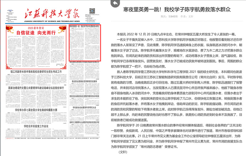 《乐鱼官方网页版报》作品《寒夜里英勇一跳!我校学子陈宇航勇救落水群众》(作者:文轩;责编:李巍男)获文字类二等奖;《乐鱼官方网页版报》作品《是退役士兵也是抗疫新兵 “老兵防疫特别行动小组”志愿守护“疫”线》(作者:万旻、谢凌燕、周珂;责编:李巍男)获文字类三等奖;《乐鱼官方网页版报》作品《从小竹筏到大轮船》(作者:杨金龙;责编:李巍男)获副刊类三等奖;乐鱼官方网页版微信公众号作品《江乐鱼官方网页版,是……?》(作者:陶淑琴、李沐轩;责编:王文强、罗文)获三等奖;乐鱼官方网页版微博、抖音、快手、视频号等新媒体作品《盛世华诞,共唱美丽中国!》(作者:张薯云、缪红铭、常宇航、李家贤、许铮、徐荣晨;责编:王文强)获三等奖。