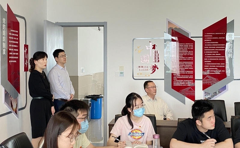 近日,校党委副书记汤建调研了经管学院党建阵地建设情况。机关党委书记、组织部副部长祁凯,经管学院党委书记尹洁、副书记赵海晓,宣传部副部长张强等一同参加调研。