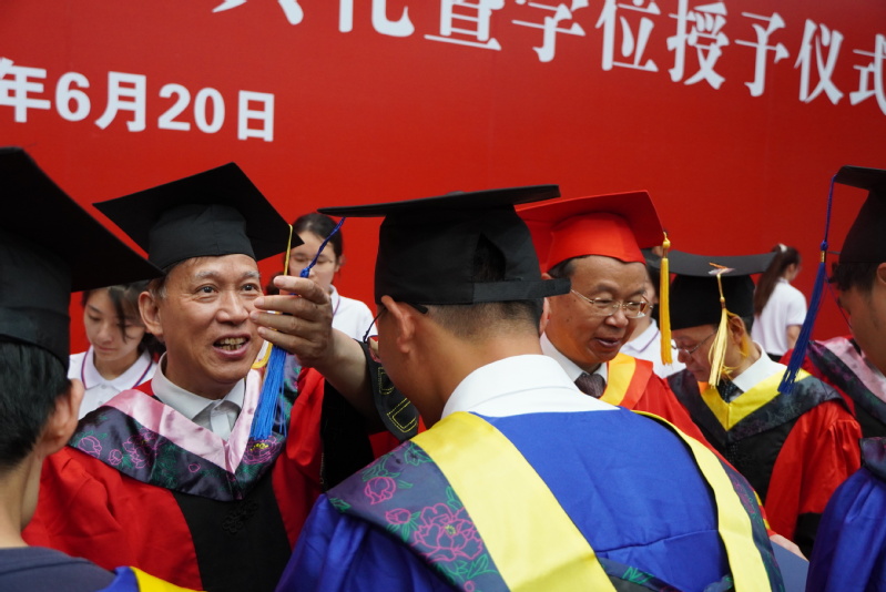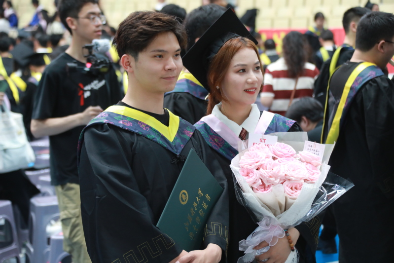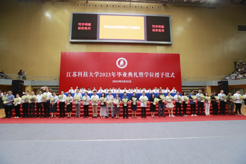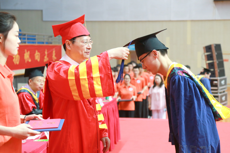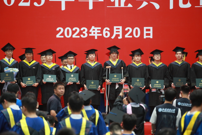 校党委常委、副校长任南宣读《关于准予2023届本科学生毕业的决定》和《关于授予2023届本科毕业生学士学位的决定》。副校长王加友宣读《关于准予2023届博士、硕士研究生毕业的决定》和《关于授予2023届研究生博士学位、硕士学位的决定》。校党委副书记、副校长景旭文宣读《关于表彰2023届本科生、研究生“优秀毕业生”的决定》。主席台的领导和导师们为毕业生代表发放毕业证书,为优秀毕业生颁发荣誉证书、赠送毕业纪念品。
