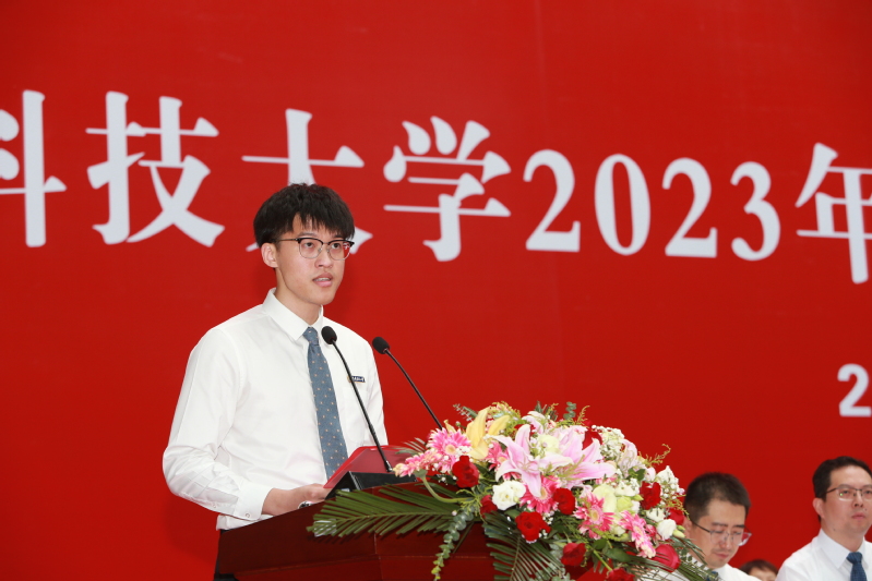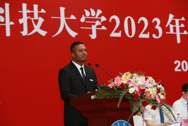 明朝即长路,惜取此时心。母校的一草一木、一砖一瓦,铸造着江乐鱼官方网页版人的风骨与精魂,更是学子们奋进前行的动力源泉。研究生代表、经济管理学院工业工程与管理专业2023届研究生孙嘉俊深情回顾了自己在江乐鱼官方网页版求学的付出与收获;来自孟加拉国的2023届机械设计制造及其自动化专业本科生山姆代表海外留学生表达了对母校的不舍与感谢;机械工程学院2023届工业设计专业本科毕业生赵薇以“做有理想、敢担当、能吃苦、肯奋斗的新时代青年”与全体毕业生共勉。