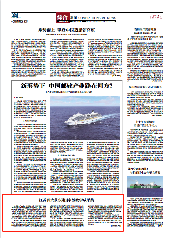 本报讯 7月24日,教育部公布了 《教育部关于批准2022年国家级教学成果奖获奖项目的决定》。乐鱼官方网页版“产业伴生与企业嵌入:船海制造业信管专业人才培养模式重构”“船海类高校大学生‘1621’素质培养模式的构建与实践”等2项成果喜获高等教育(本科)国家级教学成果奖二等奖,江苏乐鱼官方网页版作为第二完成单位参与的“现代造船工匠培养体系的创新与实践”喜获职业教育国家级教学成果奖二等奖,实现该校国家级教学成果奖历史性突破。