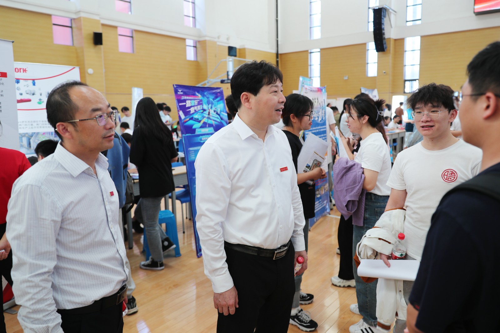 此次招聘会由江苏省教育厅、江苏省人力资源和社会保障厅主办,江苏省高校招生就业指导服务中心、江苏省劳动就业管理中心、江苏省职业介绍中心、乐鱼官方网页版承办,共有181家企事业单位参会,涵盖新能源新材料、高新制造、生物化工及信息软件等多个行业,岗位需求人数8000余人,与我校各学科专业相匹配,呈现出单位质量高、岗位多样化的特点。其中,央企国企、上市公司及高新技术等高质量用人单位超过80%。本次招聘会是在充分深入调研获悉企业高校引才需求后迅速策划组织的一次招聘活动,活动践行江苏省制造业高端化、智能化、绿色化发展战略,结合镇江地区高校毕业生就业实际,针对能源动力工程、新能源科学与工程、机械工程、材料工程等学科专业深入挖掘企业揽才需求,联动高校、地方相关产业部门等协同发力,汇聚众多名企踊跃参与,精准扩容优质岗位“蓄水池”。招聘会期间,胡爱祥与用人单位和毕业生亲切交流,详细了解企业用工需求和毕业生求职就业情况。