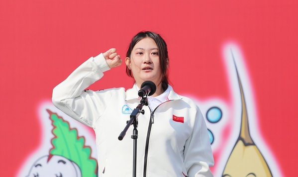 学生运动员代表、2023年第17届中国大学生跆拳道锦标赛一等奖获得者经济管理学院2021级白蕾琪同学,裁判员代表、体育学院管慧香老师进行庄严宣誓。