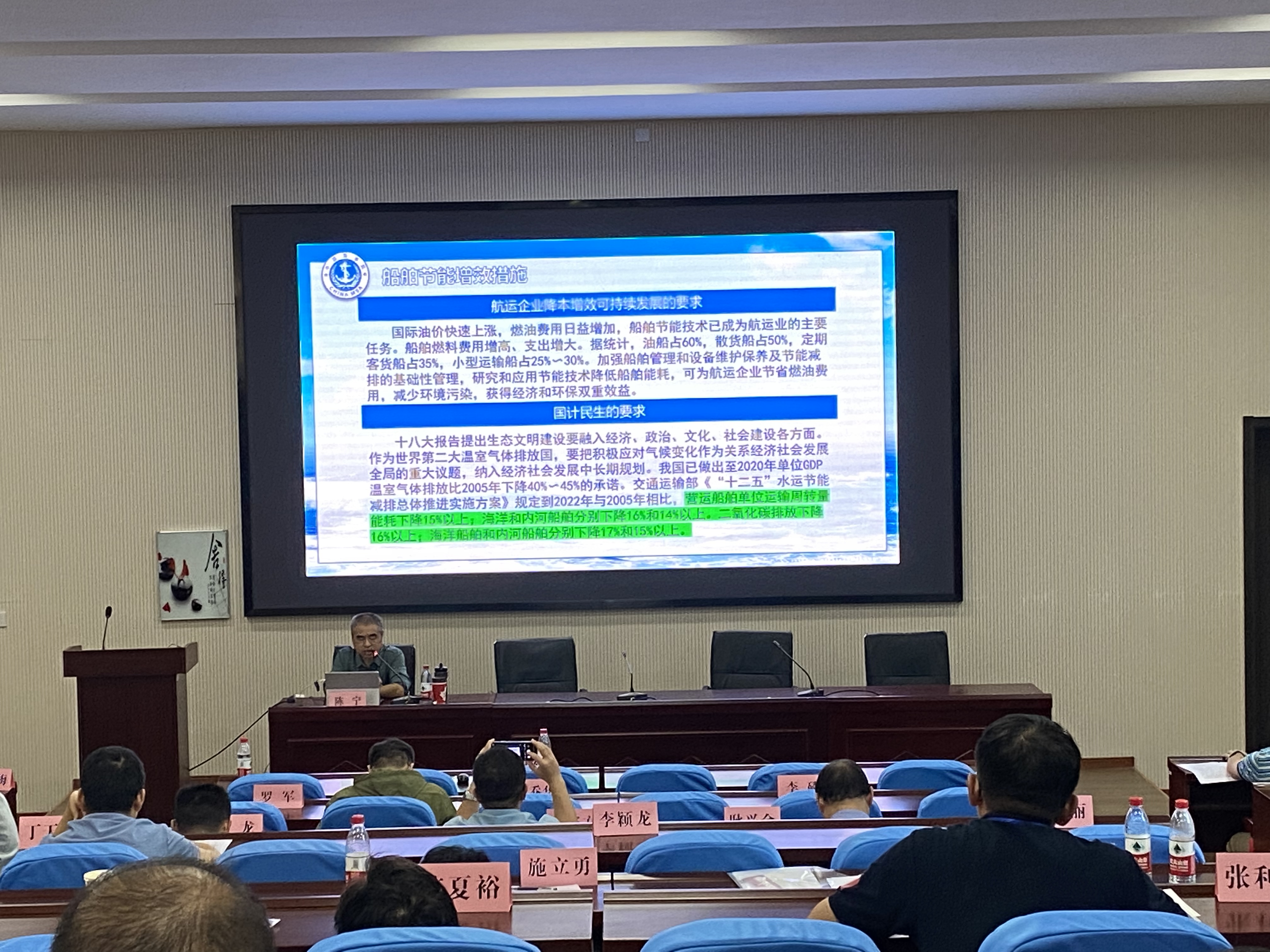 本次研修班的课程紧紧围绕绿色船舶技术主题,先后邀请广州船舶及海洋工程设计研究院副院长、研究员姜华作题为《多元化能源供给实现多重目标的“双碳”战略条件下的船舶清洁动力解决方案和应用实践》的专题报告,中国船级社科技工作委员会副主任罗肖锋作题为《绿色船舶技术与新能源应用》的专题报告,乐鱼官方网页版经管学院高级讲师、日本海归博士赵润作题为《制造业精益生产与管理》的专题报告,乐鱼官方网页版船舶与海洋工程学院院长、教授张健作题为《船舶与海洋工程装备发展现状与高质量发展趋势》的主题报告,哈尔滨工程大学教授刘龙作题为《船舶氨燃料的风险与前景及氨燃料船舶发动机燃烧技术》的专题报告,乐鱼官方网页版教授陈宁作题为《船舶智能技术的发展与应用实践》《船舶节能增效措施》的专题报告,江苏海事职业技术学院校长、教授温华兵作题为《船舶海工产业发展及绿色船舶动力技术》的专题报告,乐鱼官方网页版教授姚寿广作题为《双碳背景下绿色船舶动力技术》的专题报告,乐鱼官方网页版能源与动力学院院长、教授陈代芬作题为《海洋清洁能源技术》的专题报告。