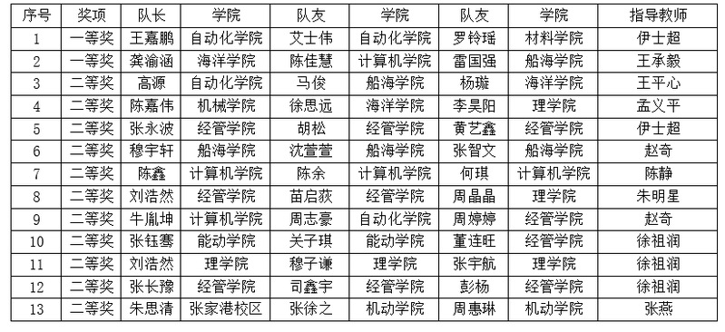 近日, 2023年“高教社杯”全国大学生数学建模竞赛结果公布,学校数学建模镇江校区获得一等奖2项,二等奖10项,国奖获奖总数全省第一,一等奖获奖总数全省第三。另外,张家港校区获二等奖1项。创学校参加该赛事以来最好成绩。