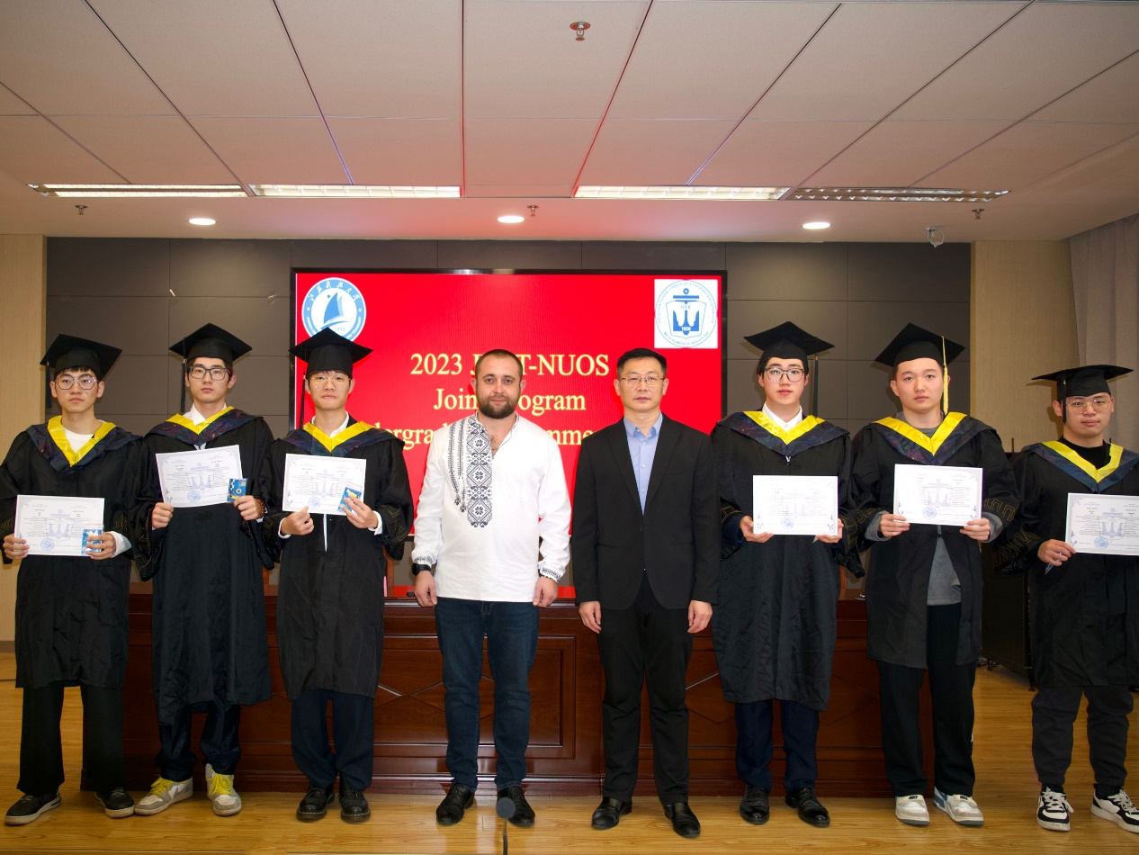 12月19日,乌克兰马卡洛夫国立造船大学副校长Mykhailo MYKHAILOV专程赴我校参加2023届中乌合作办学项目学生乌方毕业典礼并向项目毕业生颁发学士学位证书,乐鱼官方网页版船舶与海洋工程学院张健院长、学院教师及中乌班学生代表出席了此次典礼。