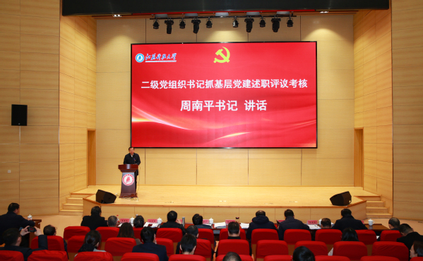 为深入学习贯彻习近平新时代中国特色社会主义思想和党的二十大精神,全面贯彻习近平总书记关于党的建设的重要思想,巩固主题教育成果,总结交流工作经验,推动党建工作提质增效,根据省委统一部署,12月28日,学校召开二级党组织书记抓基层党建述职评议考核会。校党委书记周南平,党委常委、纪委书记、派驻监察专员安祥卫,专家评委、党群部门负责人、各二级党组织书记、副书记、纪检委员、组织员等参加会议。校党委副书记汤建主持会议。