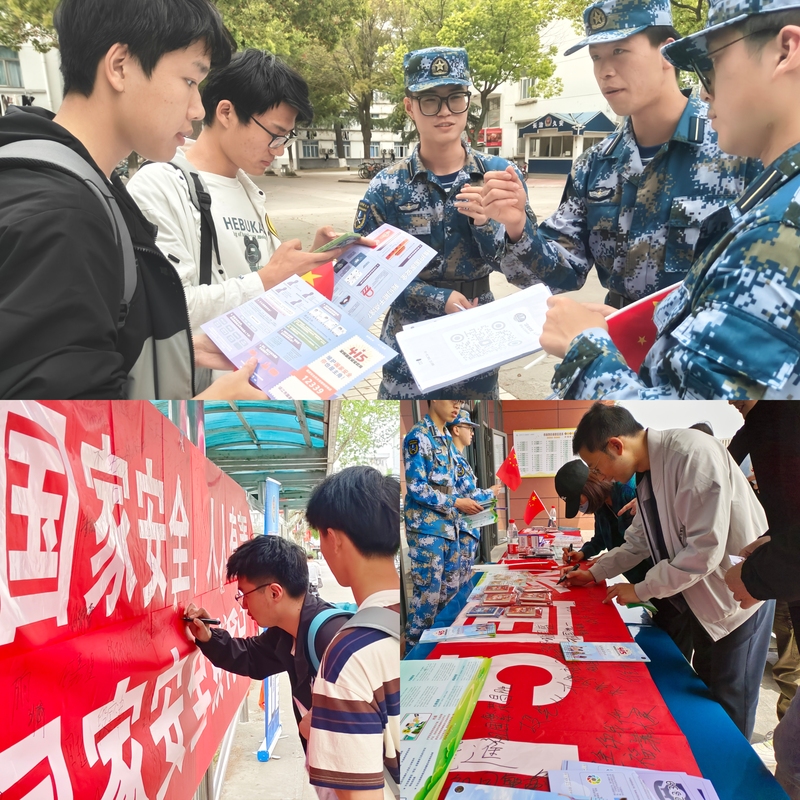 4月15日,在梦溪校区教学楼,军事教研室全体教师为大一年级1630名学生同时讲授“国家安全”专题课,带领学生系统学习总体国家安全观的主要内容,了解公民的国家安全权利和义务,普及国家安全相关法律法规,认识国家安全的重要性。各学院同步组织学生观看以“千万高校学生同上一堂国家安全教育课”为主题的公开课。在梦溪校区和长山校区宣传点,国防教育拓展班的同学为过往师生发放宣传单、宣传册,热情讲解国家安全相关知识,引导大家在活动主题横幅上签名,得到了在场师生们的积极响应。
