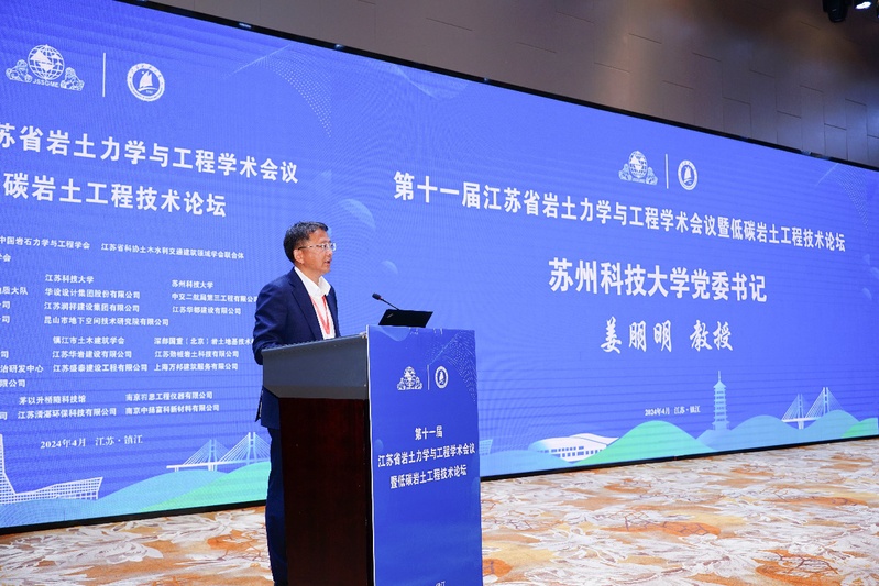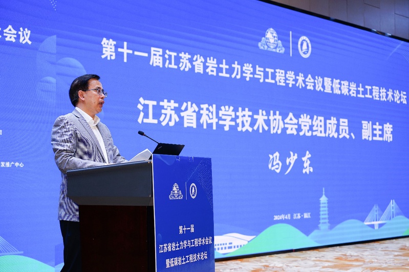 江苏省科学技术协会副主席冯少东在致辞中指出本次会议以“低碳岩土工程”为主题,积极响应国家“双碳战略”,针对低碳岩土工程的最新进展和其他关键技术问题开展广泛的学术交流。会议的成功举办必将为推动江苏省低碳岩土工程的科技创新和产业发展作出积极示范。