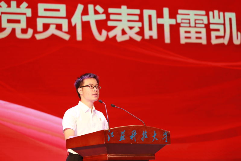 党委副书记汤建带领全体毕业生党员重温入党誓词。党员同志面向党旗庄严宣誓,在铮铮誓言中重温入党初心,坚定理想信念,牢记初心使命。