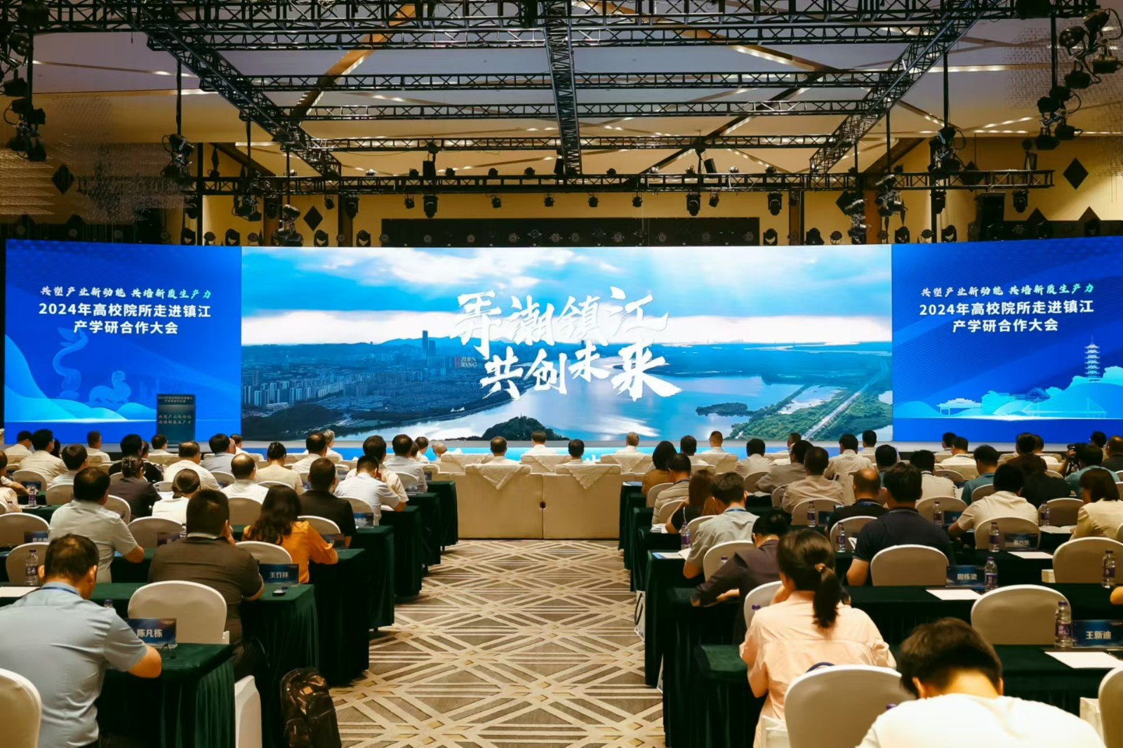 8月3日,2024年高校院所走进镇江产学研合作对接大会在丹阳举行,本次大会由镇江市人民政府主办,江苏省科技厅指导支持,副省长赵岩、市委书记马明龙、省科技厅厅长徐光辉、市委副书记、市长徐曙海、省政府副秘书长邱志强以及7位院士、7所高校书记校长等出席会议。本次大会的主题是共塑产业新动能,共培新质生产力。大会包括集中大会、科技成果展、产学研对接会等系列活动,来自全省140余个相关高校院所专家团队、技术经理人及镇江市300余家企业参加会议,党委书记周南平应邀出席会议,我校22位专家教授参加了需求发布会和洽谈对接会。