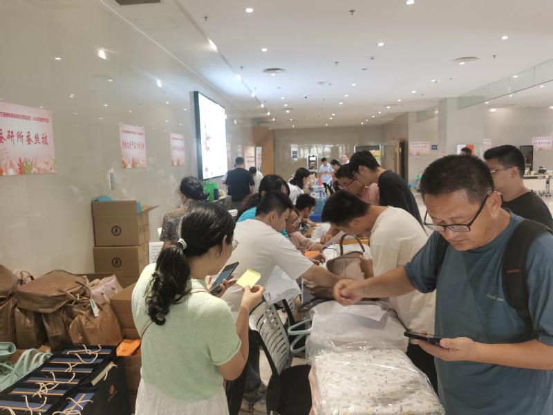 活动吸引了来自我校蚕研所、文创店、句容农业生态园、丹阳眼镜厂家及各知名品牌汽车、各大银行、ETC通行宝等20余家单位现场参与,提供了丰富多样的文化用品、农产品、生活用品以及生活服务,并给出了专属本次活动的大幅度优惠力度,令来到现场的教职工欣喜不已,纷纷下单选购。其中学校的各类自研产品尤为受到大家的青睐,显示出我校品牌的实力和影响力。