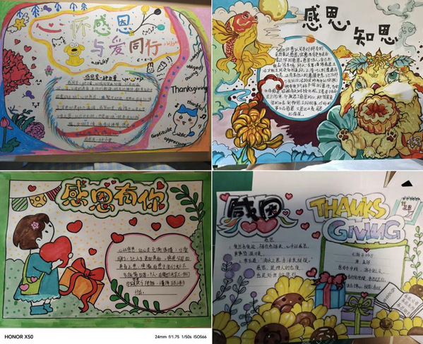在线上活动中,同学们围绕感恩的定义与意义、感恩方式和感恩故事为主题用心绘制出一幅幅精美的手抄报,生动表达了内心深处对于父母、老师、朋友的感恩之情。