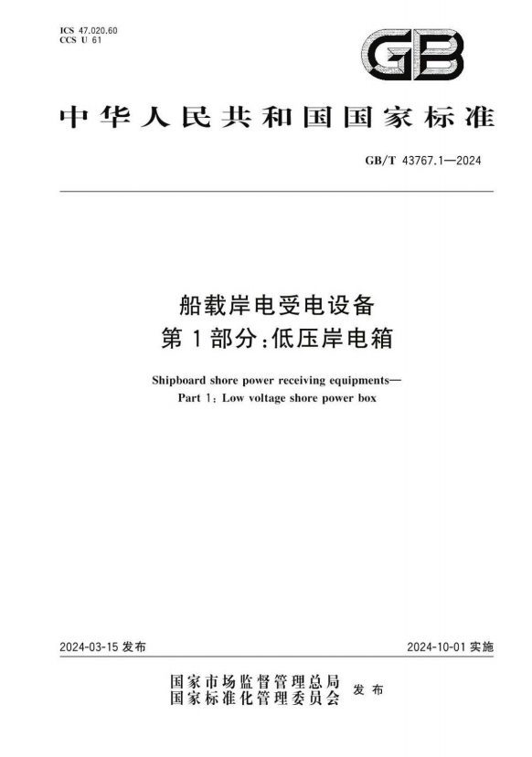 日前,从国家市场监督管理总局和中国国家标准化管理委员会获悉,由我校牵头制定的两项国家标准《GB/T 43767.1-2024 船载岸电受电设备 第1部分:低压岸电箱》和《GB/T 43767.2-2024 船载岸电受电设备 第2部分:高压岸电箱(柜)》正式实施。我校为两项标准的第一起草单位,自动化学院朱志宇教授、客座教授周洋高级工程师、姜文刚教授、智鹏飞副教授是标准的主要起草人。参与起草的还有江苏中智海洋工程装备有限公司、中国船舶集团有限公司第七〇四研究所、江南造船(集团)有限责任公司、南瑞集团有限公司、交通运输部水运科学研究所、中国船级社武汉规范研究所、武汉长江船舶设计院有限公司、苏州电器科学研究院股份有限公司、国网江苏省电力有限公司、中国船舶集团有限公司第七二三研究所、中国船级社上海规范研究所、江苏健龙电器有限公司 等12家单位16位主要起草人。