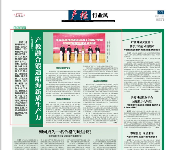 2024年12月,江苏省高技术船舶和海工装备产业链党组织联建共建仪式在江苏乐鱼官方网页版举行,赋能党建链、创新链、人才链协同发展,落实江苏省加快培育先进制造业集群的工作部署,建立“产业需求—学科能力”动态匹配机制,以党组织引领力赋能船舶海工产业发展新质生产力,以高质量党建引领产业链高质量发展。