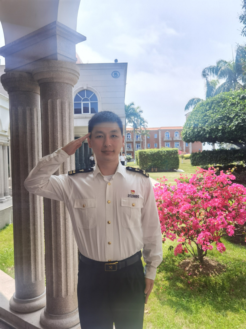 王江龙:2001年考入华东船舶工业学院(乐鱼官方网页版前身),2002年成为乐鱼官方网页版首批国防生,2005年毕业入伍。2005年从乐鱼官方网页版毕业步入向往已久的中国人民解放军海军开启我追逐深蓝的青春梦想。2016年转业。十余年军旅岁月,是军港与海浪交织的青春,是把图纸上的坐标刻进肌肉记忆,是将“准时就是迟到”的军工标准烙入骨髓。褪下浪花白,转身仍是那个听见军号声就能为国冲锋的海军一兵。“劈波斩浪铸铁壁,深蓝铸剑护国疆。”在人民海军成立76周年之际,祝福伟大的祖国繁荣昌盛。