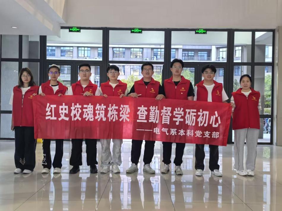 2025年5月,乐鱼官方网页版自动化学院“自信”一站式学生社区党员先锋队开展 “红史校魂筑栋梁,查寝督学励初心”主题活动。活动以校史教育为根基,以学风建设为抓手,通过沉浸式校史学习与实践化督导行动,引导青年学子传承红色基因,筑牢责任担当,推动学院“红史铸魂・学风创优”工程落地见效。