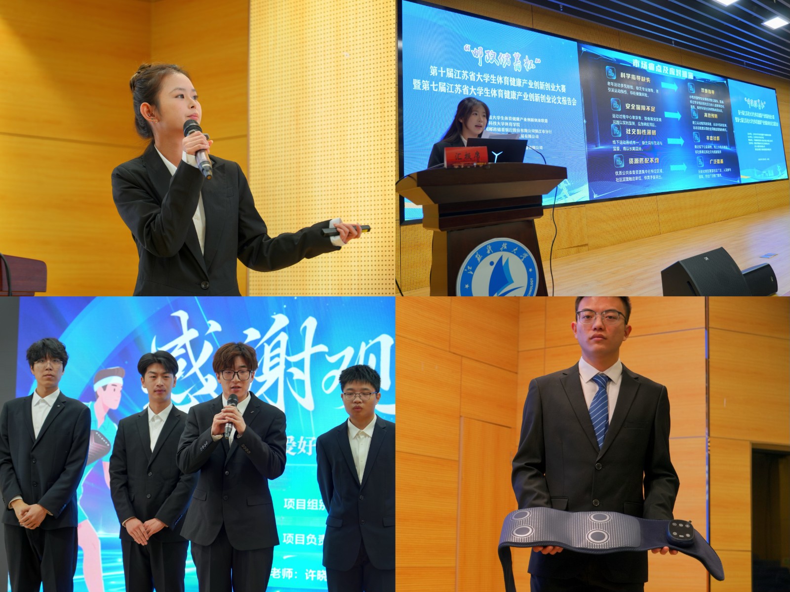 大赛期间,还举办了第七届江苏省大学生体育健康产业创新创业论文报告会暨体育健康产业高质量发展学术研讨会,由我校体育学院副院长赵长征主持。来自南京体育学院、苏州大学、河海大学的专家学者及师生代表,围绕体育健康创新创业主题,就智能运动装备、体医融合、社区体育服务等热点领域问题开展交流研讨,有效促进了体育健康产业创新创业的理论研究与实践探索。
