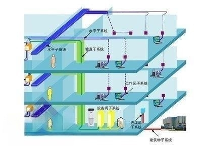 组成部分包括电缆、连接器和相关支撑硬件,负责公共系统间的各种设备连接。设备间子系统中的导线类似于电话配线系统站内配线,它将相对应的电气保护设备连接到了需要设备保护的建筑物设施地点。