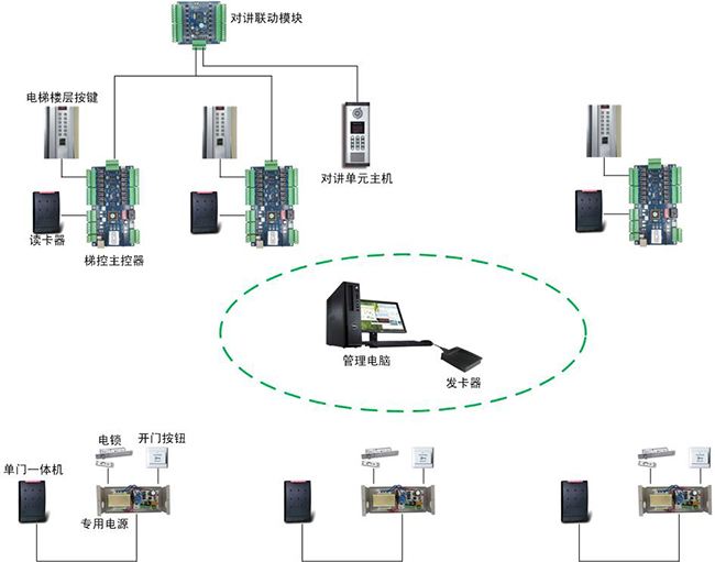 门禁一卡通系统能实现多种不同管理功能。例如:门禁、考勤、就餐、消费、停车场出入,巡逻签到、会议签到,电梯使用等多种功能。这些功能可以使用来自不同厂家的设备,例如:门禁考勤使用甲厂家的产品,消费使用乙厂家的产品,停车场管理使用丙厂家的产品。大家约定使用同一种格式的卡片,则用户持有一张卡,分别在不同厂家的软件中进行登记,而拥有门禁考勤消费停车场管理多种用途。