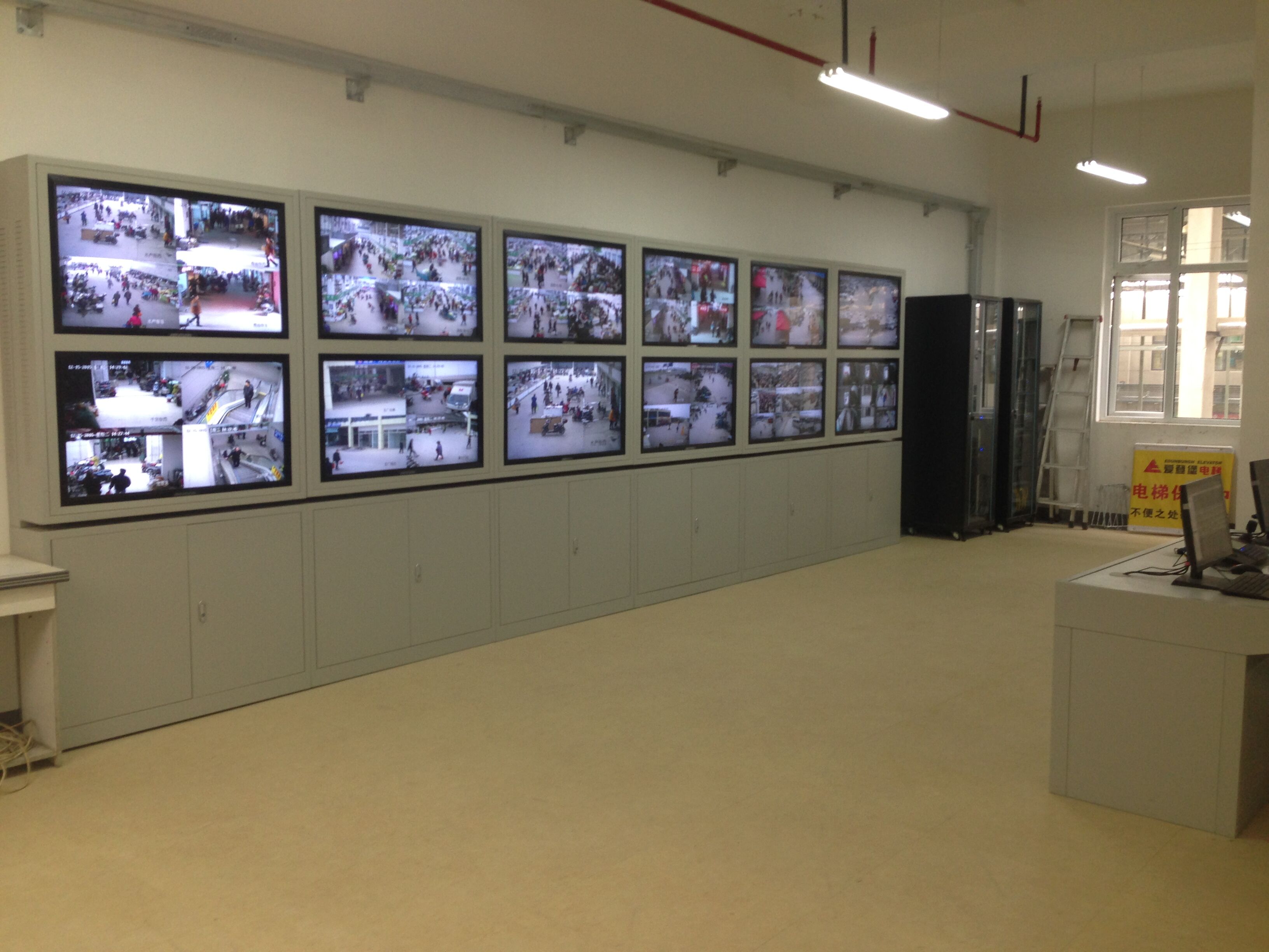 显示与记录设备安装在控制室内,主要有监视器、硬盘录像机和一些视频处理设备。